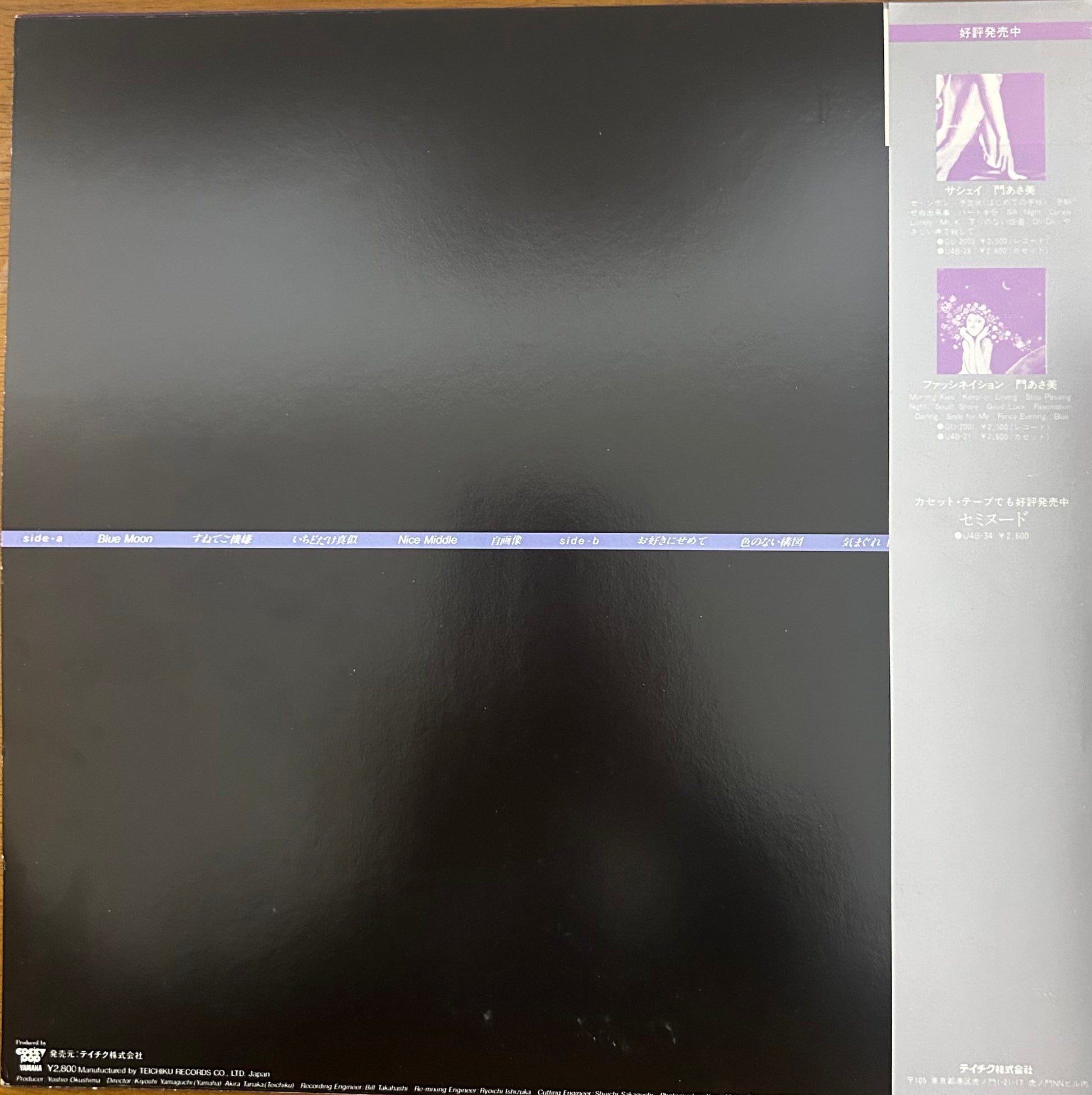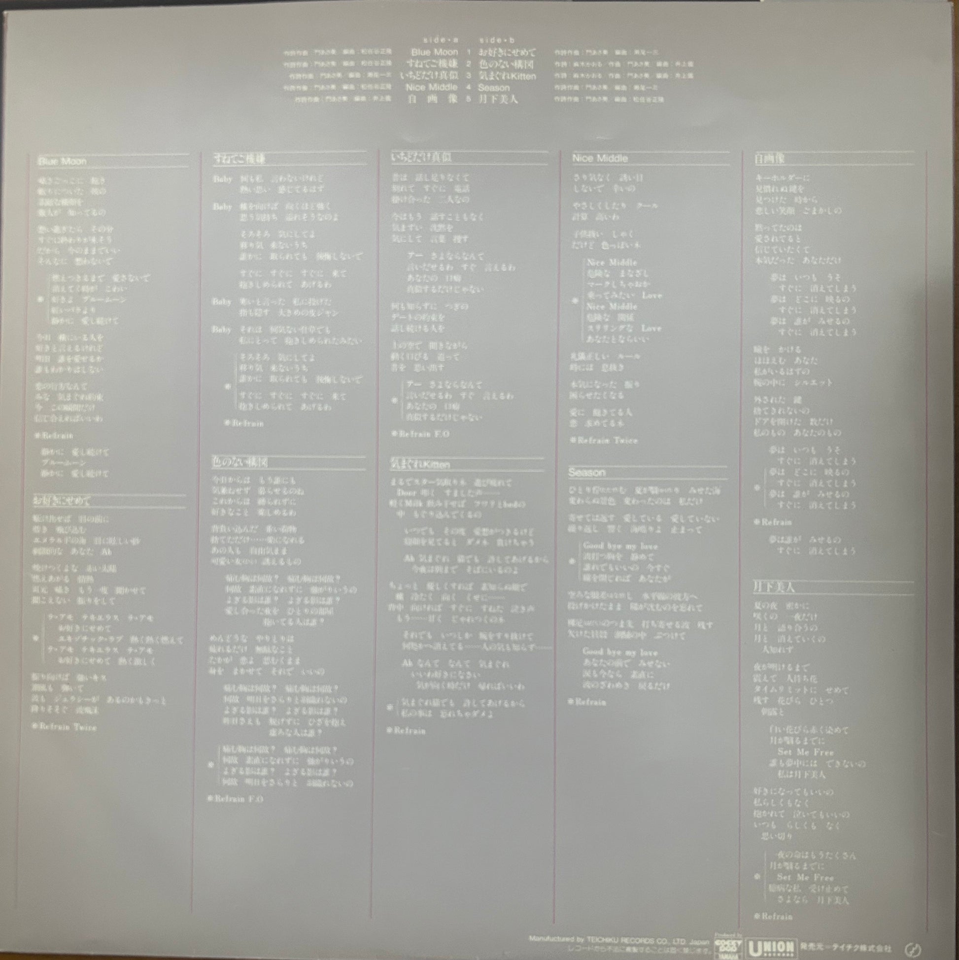 | Comment | Japanese disco gems like “Osuki ni Semete” and “Kimagure Kitten” (arranged by Akira Inoue), as well as the meltingly mellow tune “Gekka Bijin.” Arrangements feature contributions from Akira Inoue and Masataka Matsutoya. A rare female artist who, despite never appearing in the media or performing live, continued to release high-quality works consistently. |