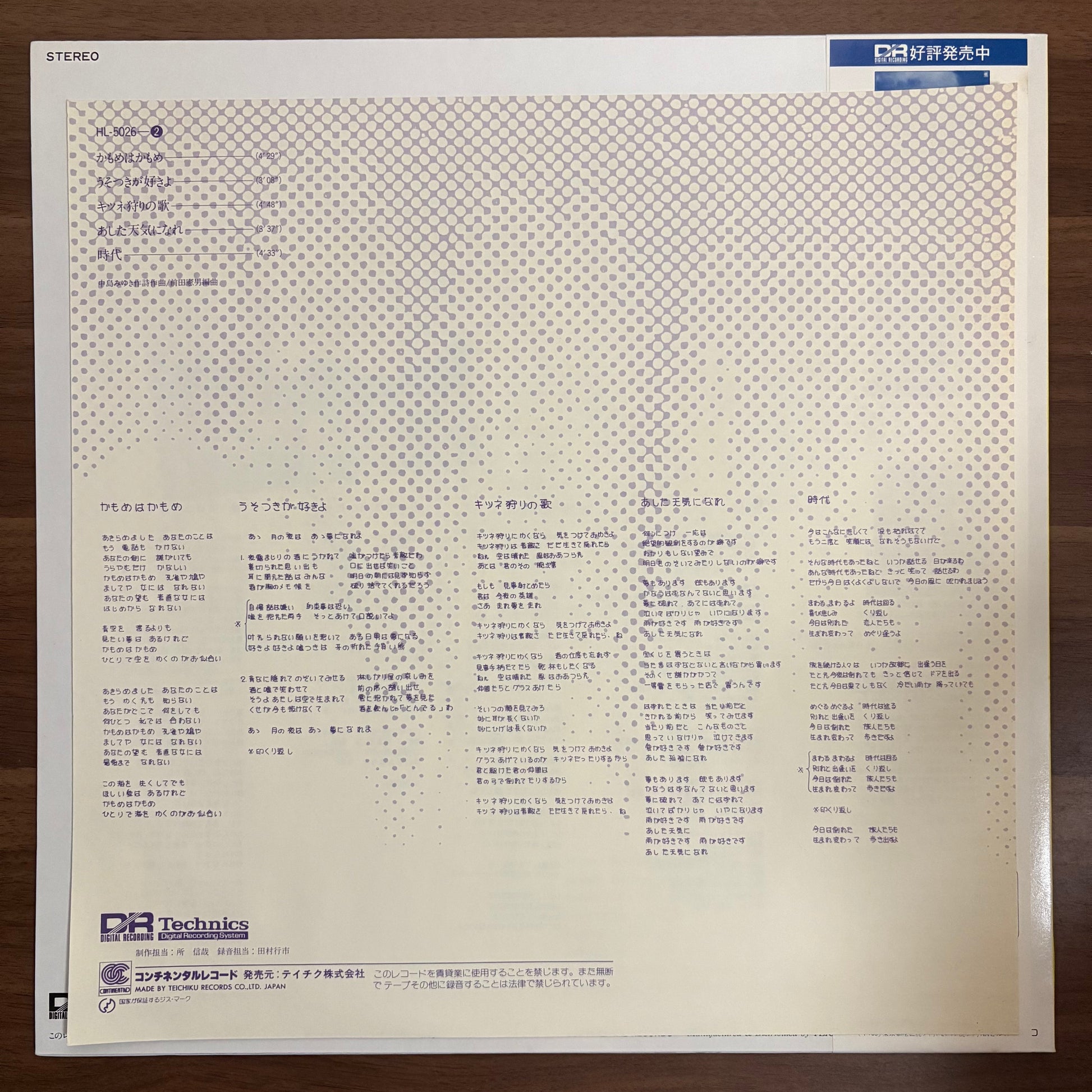Easy-listening arrangements of songs by Miyuki Nakajima, crafted by legendary pianist and arranger Norio Maeda. This orchestral work blends easy listening with hit kayō melodies, adding a nostalgic, slightly emotional vibe like vintage supermarket BGM. Highly recommended for beatmakers and samplers.