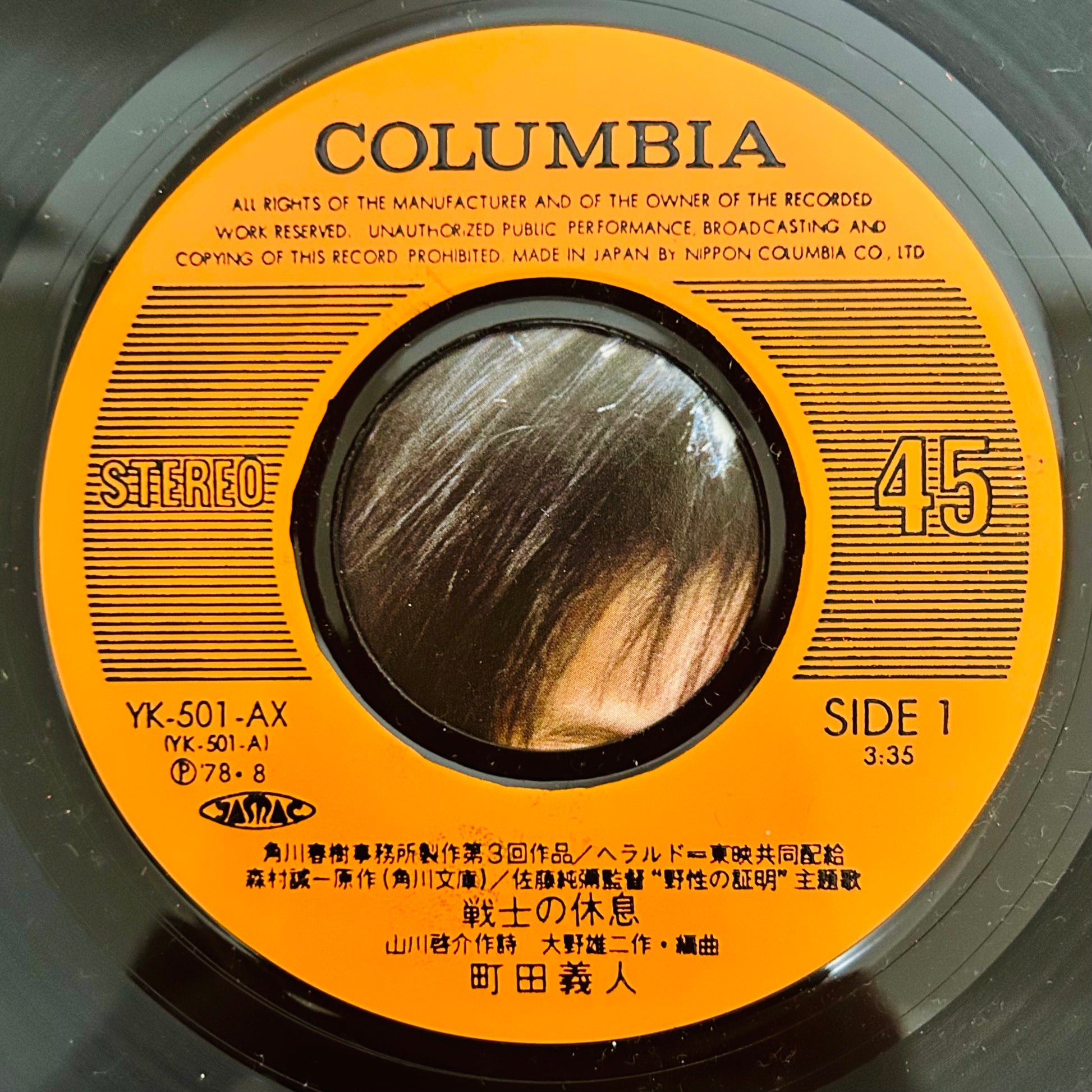 | Comment | Single cut from the soundtrack to the 1978 Kadokawa film Proof of the Wild starring Ken Takakura and Hiroko Yakushimaru, composed by pianist Yuji Ohno. Features the powerful main theme “Senshi no Kyūsoku”—written and arranged by Ohno and passionately sung by Yoshito Machida (formerly of Zoo Nee Voo)—along with “Ginga wo Oyoge.” |