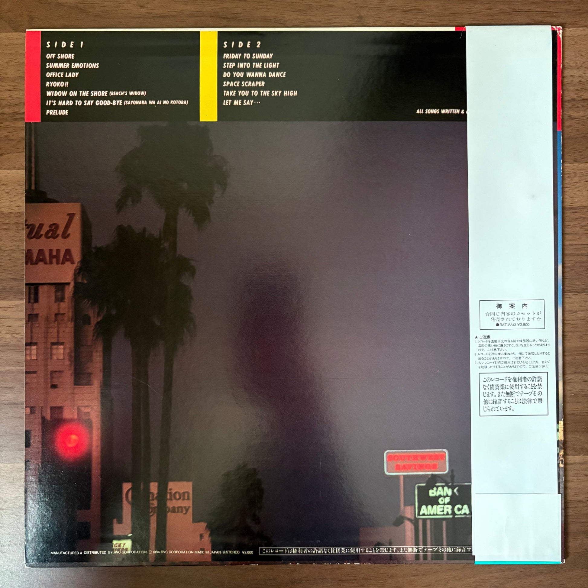 A concept compilation modeled after Tatsuro Yamashita’s COME ALONG, recreating Hawaii’s KIKI radio station with DJ Kamasami Kong linking the tracks. Originally released only on cassette in 1984, with the LP following later that year. Features the breezy Yamashita-influenced resort tune “Off Shore,” the mellow mid-tempo “Summer Emotions,” the city-meets-resort pop single “Friday to Sunday,” and the CM favorite “Take You to the Sky High,” all woven together with DJ spots and wave sound effects. |