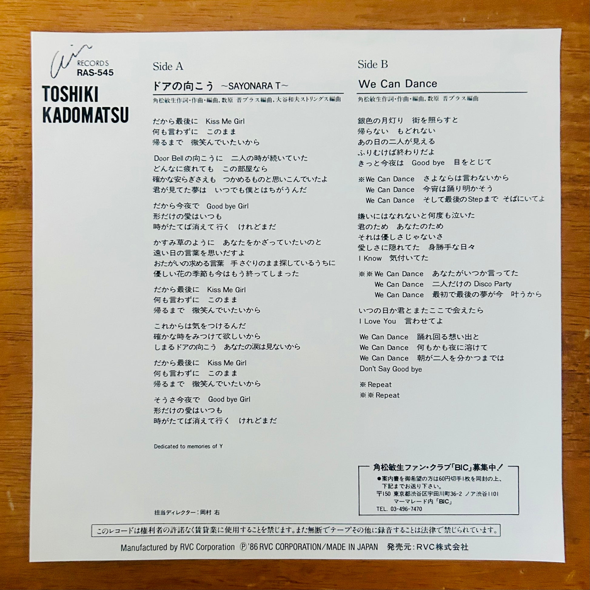 Toshiki Kadomatsu/ Door no Mukō ~ Sayonara T (original 1986) 7"Single