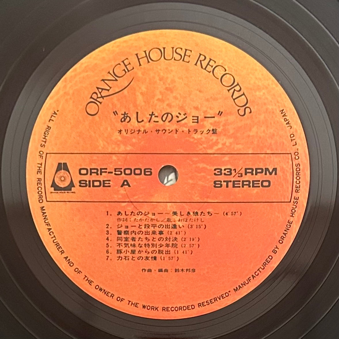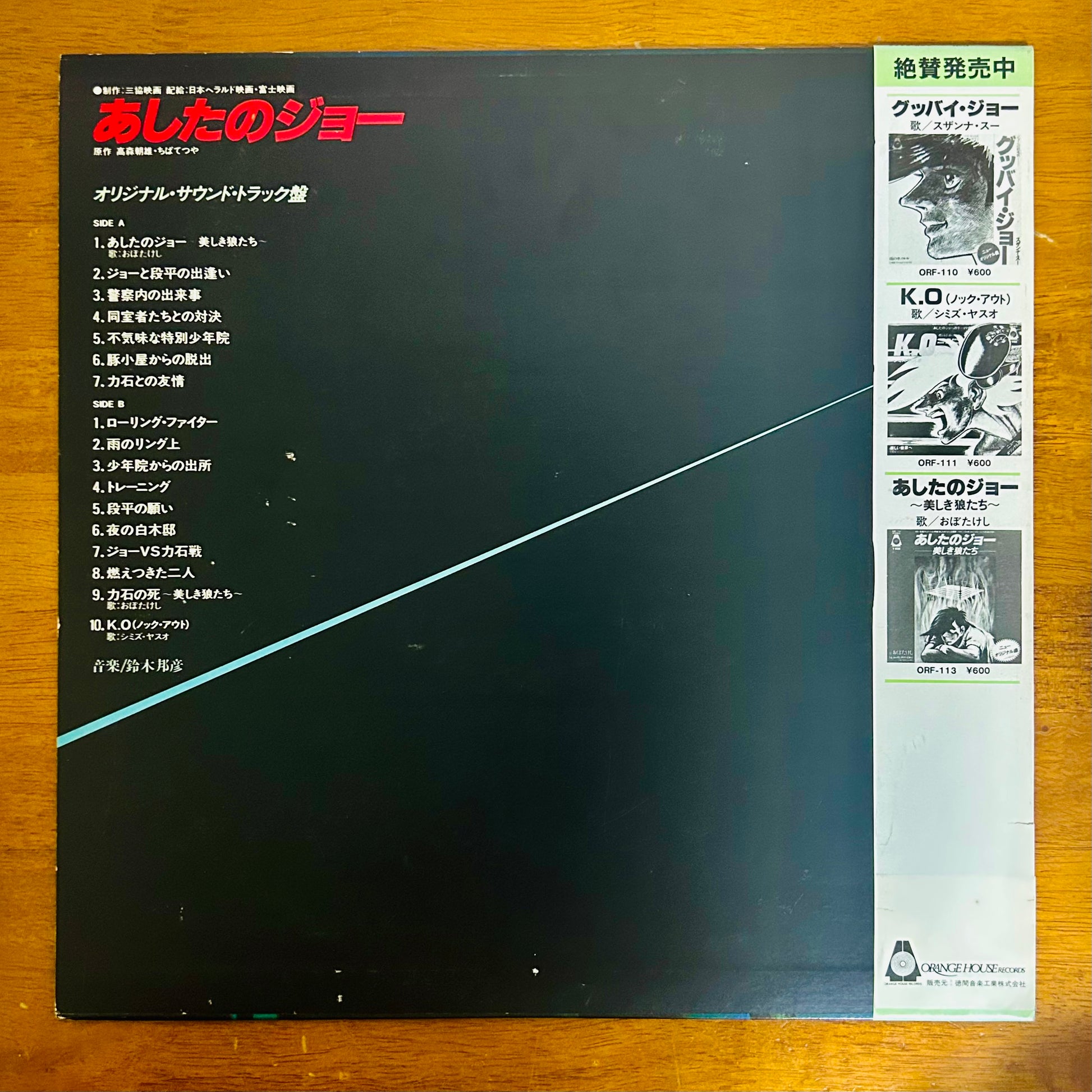 | Comment | Music by Kunihiko Suzuki. Packed with jazz-funk and rare-groove cuts, highlights include the bass-driven A4 “Showdown with His Cellmates” and B5 “Danpei’s Wish,” the percussive disco track A6 “Escape from the Pigsty,” the uplifting disco cut B10 “K.O.” sung by Yasuo Shimizu, and the Shaft-like opener A2 “Joe Meets Danpei.” Also featured are dark grooves like A5 “Eerie Reform School,” plus B1 “Rolling Fighter,” and the intense B7 “Joe vs. Rikiishi,” making this LP a goldmine of gritty grooves. |