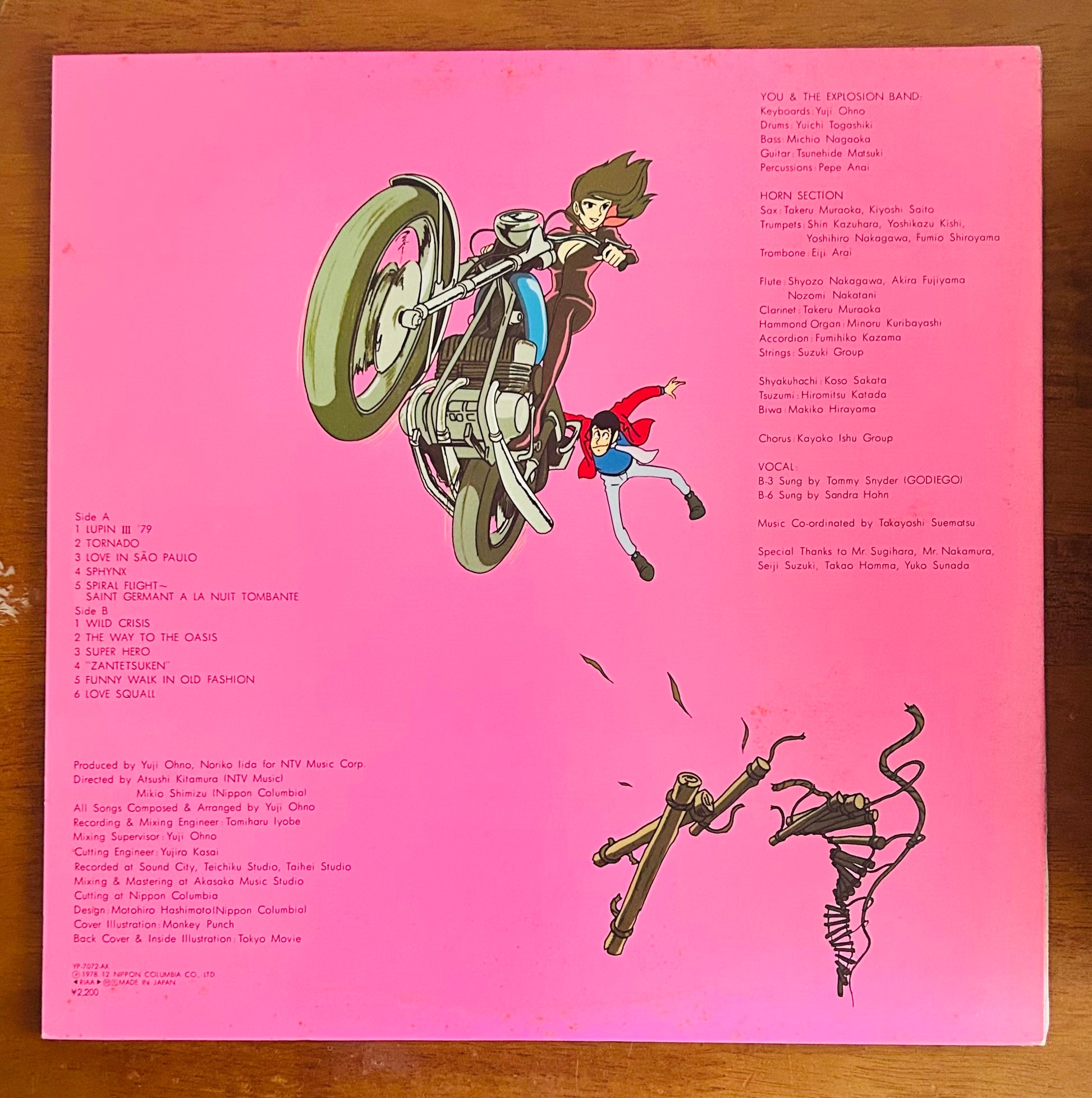 Comment | killer second album by You & The Explosion Band, also serving as the official soundtrack to the Lupin the Third theatrical anime. Packed with iconic tracks like the funky and soulful “Lupin III ’79”, the fiery jazz fusion “Tornado” (Jigen’s theme), the dramatic “Zantetsuken” (Goemon’s theme), and the mellow, seductive groove of “Love Squall” (Fujiko’s theme). Also features the breezy, scat-filled fusion samba “Love in São Paulo.”An essential piece for Lupin fans and jazzfunk collectors alike. |